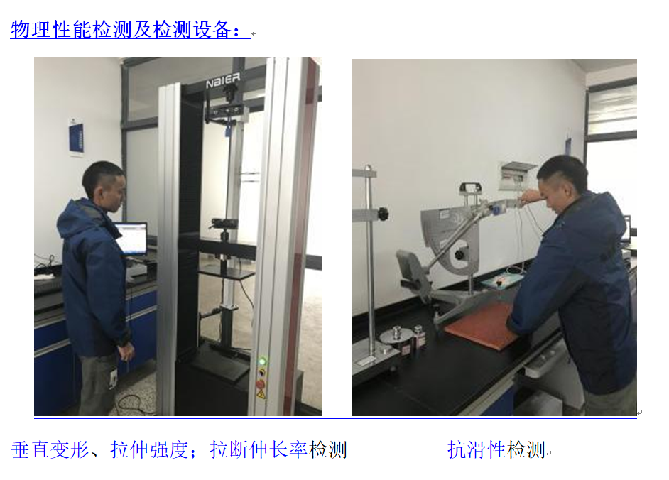 國檢集團•云南合信公司設有合成材料相關辦公場所一千余平方米。先后購置了合成材料相關的檢測儀器設備10余臺(套),價值數百萬元。其中包括:塑膠跑道面層
