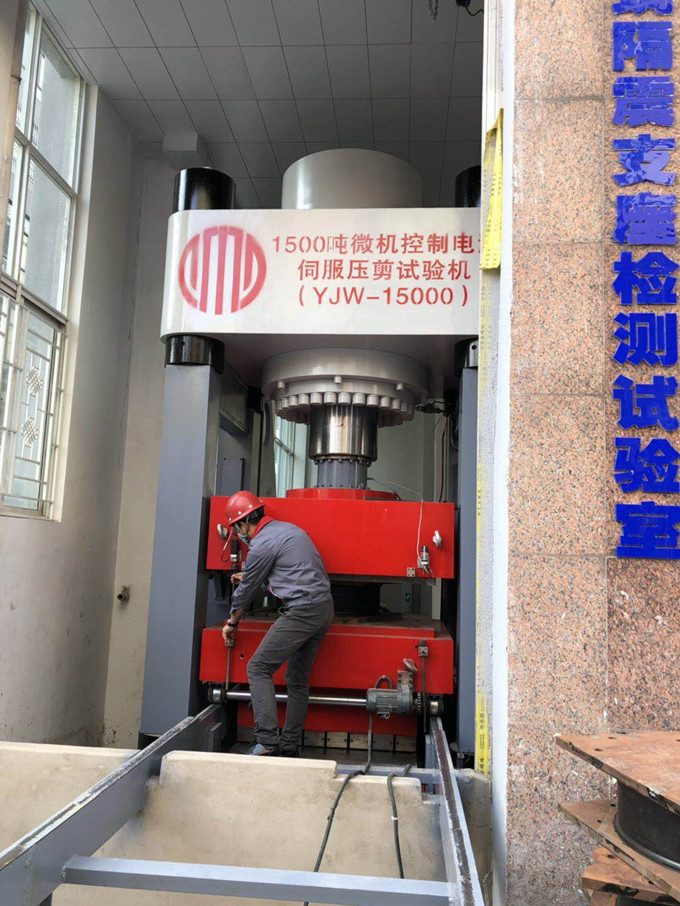 經過三年的發展,現在裝備已非常齊全,擁有全套減隔震檢測設備,主要包括:壓剪試驗機(1500t、3000t各一臺)、金屬阻尼器檢測設備、黏滯(黏彈性)