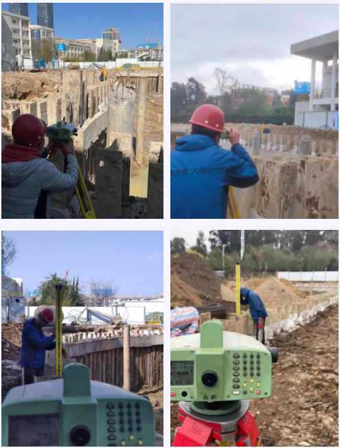 對于趙敏等七位同事來說,除了街上購置年貨的人群提醒他們今天是除夕以外,進入到工地現場后,仿佛又進入日常工作的一天。變形監測工作任務分配、技術交底、安全注意事項......,慣例的準備工作結束后,七位同事立即開始了上午的監測工作;儀器架設、基準點聯測、監測點數據采集記錄,上午的監測工作結束后,大家又匆匆趕往下一個基坑監測項目。