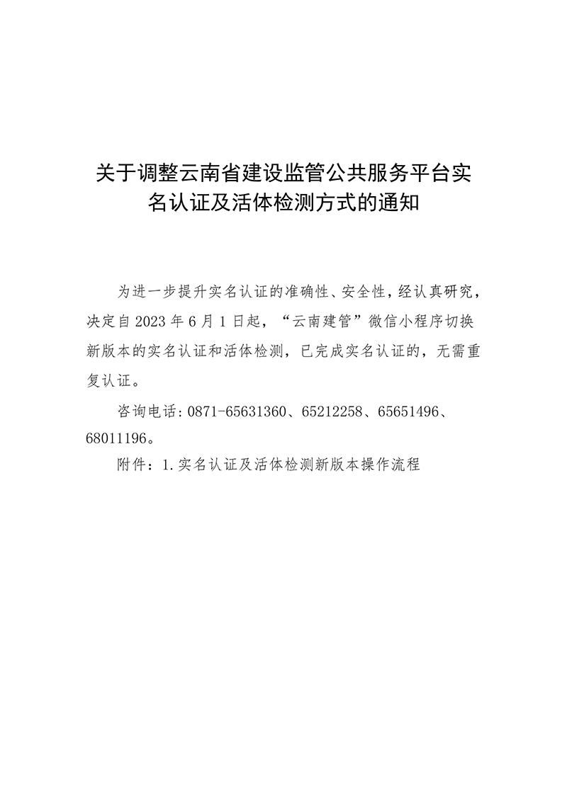 關(guān)于調(diào)整云南省建設(shè)監(jiān)管公共服務(wù)平臺(tái)實(shí)名認(rèn)證及活體檢測(cè)方式的通知