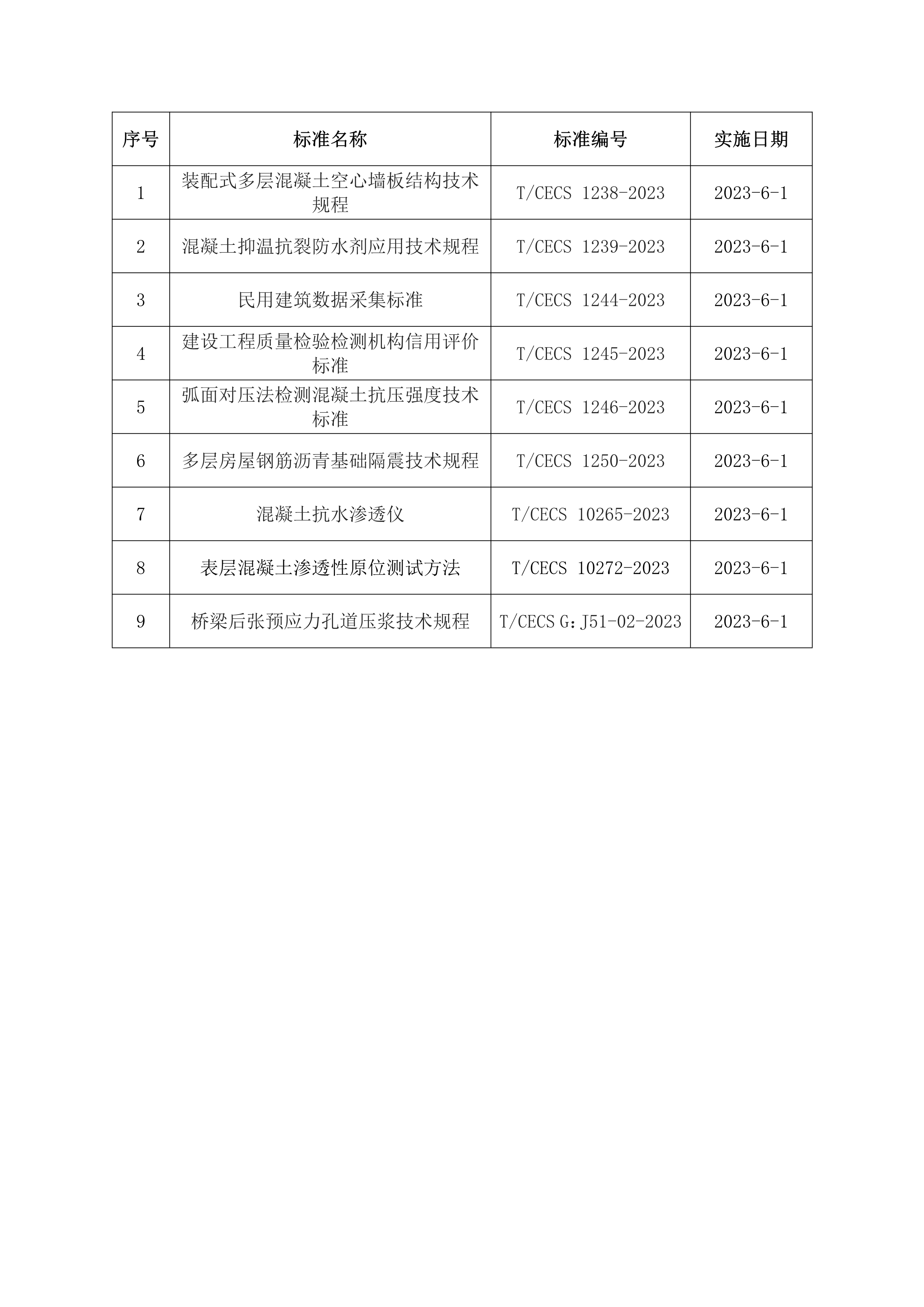 2023年6月開始實(shí)施的工程建設(shè)標(biāo)準(zhǔn)
